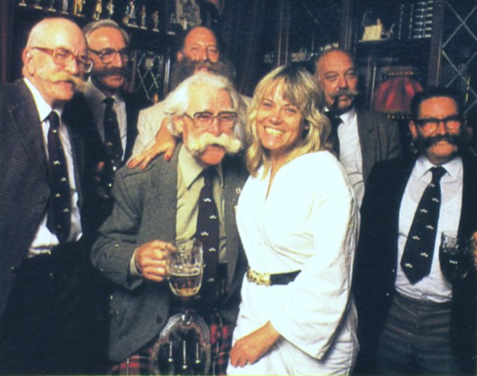 A delightful shot of Wendy, from Just Seventeen magazine, Dec 86. Although the caption doesn't say so, I suspect she is at the 'Windsor Castle' pub in London, in the company of the distinguished membership of the Handlebar Club of London. |